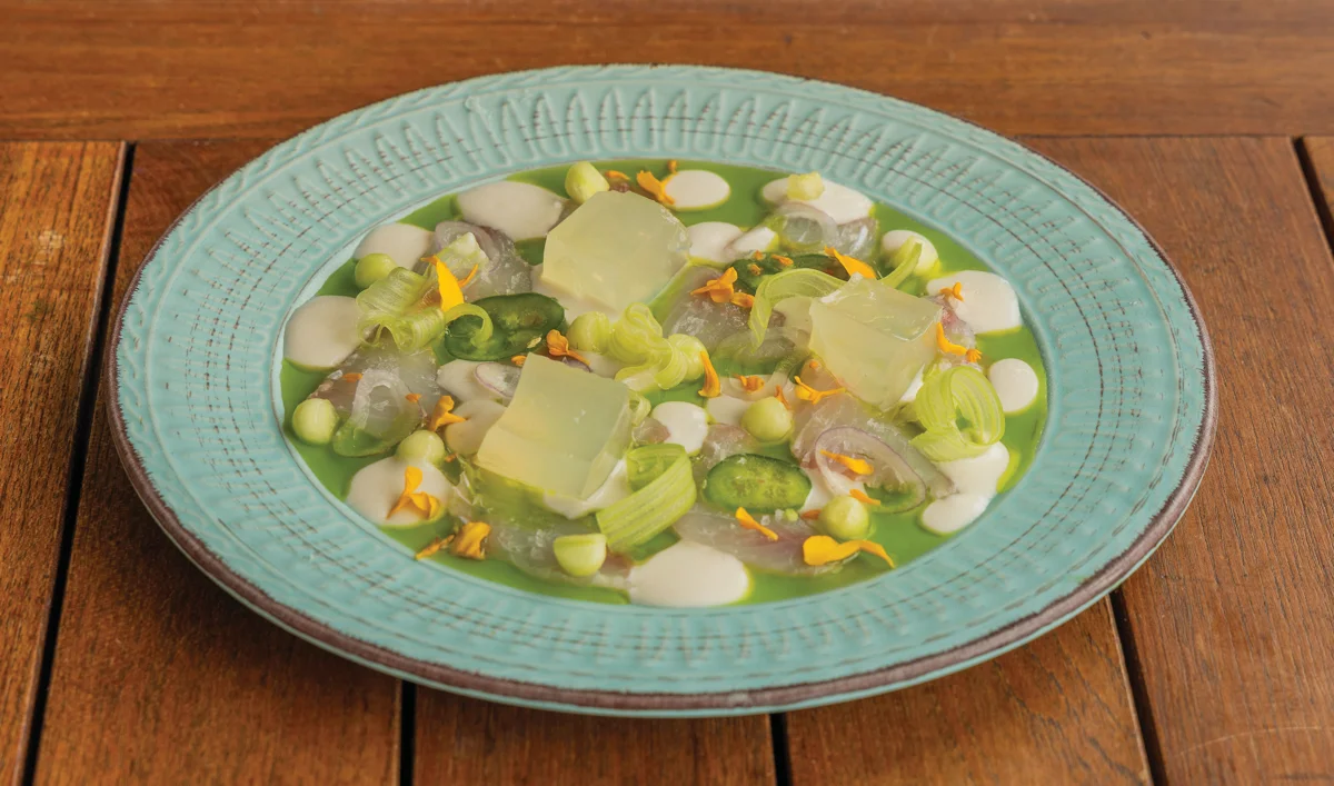 In Miami, Verde’s Mojito Cuban Tiradito is a mahi-mahi appetizer layered with mint oil, cucumber, jalapeño and slices of a mojito Jell-O shot, delivering an unexpected, playful bounce.