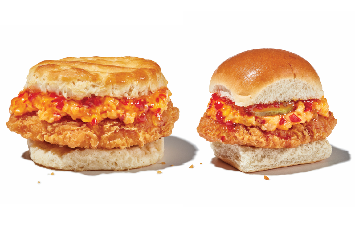 Atlanta-based burger chain Krystal Restaurants ran a smart LTO promotion that introduced fried chicken sandwiches to both its all-day and breakfast menus. The Side Chik lineup features a white meat chicken sandwich in three varieties, all served in the brand’s classic steamed bun: BBQ Bacon Cheese with smoked bacon and tangy barbecue; Pimiento Cheese and Classic, featuring Duke’s mayonnaise and pickle. In a move that demonstrates pimiento cheese’s daypart versatility, Krystal also offers the Side Chik at breakfast: The Pimento Cheese Biscuit.