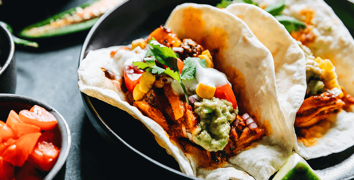 - Mojo Pork Bowl: Chopped citrus mojo grilled pork loin + black beans + basmati rice + arugula + roasted banana-Serrano chutney + pickled red onion