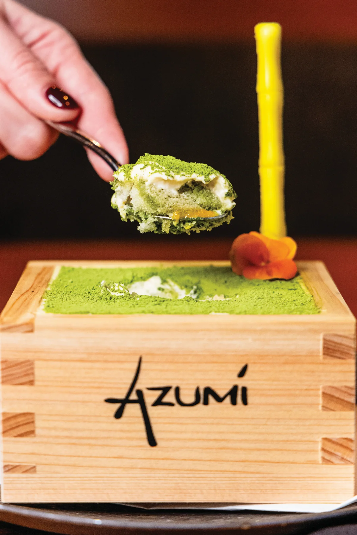 Credit: Azumi Asian flavors are driving innovation with tiramisu. The Matchamisu at Azumí, with locations in Baltimore and Houston, stars matcha powder along with marscapone mousse and passionfruit jam.