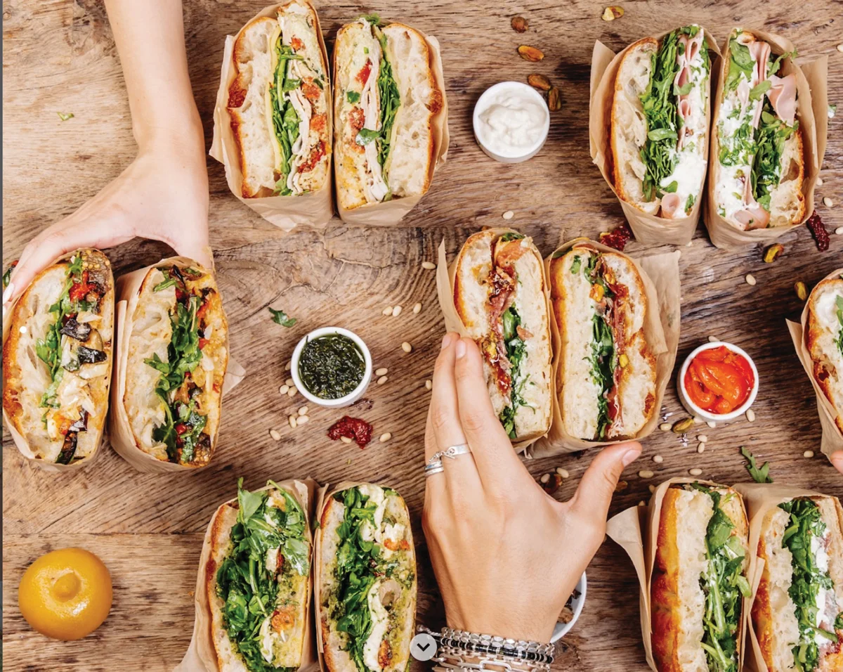 Credit: Mamie Mamie in Los Angeles elevates the Tuscan sandwich tradition. Standouts include the Capriccio, layering Italian burrata, sun-dried tomato, roasted bell pepper, fresh pesto, pistachios and arugula, and the Monaco, with Italian tuna conserva, Calabrian chile, artichoke cream, preserved lemon, roasted tomato and olives.