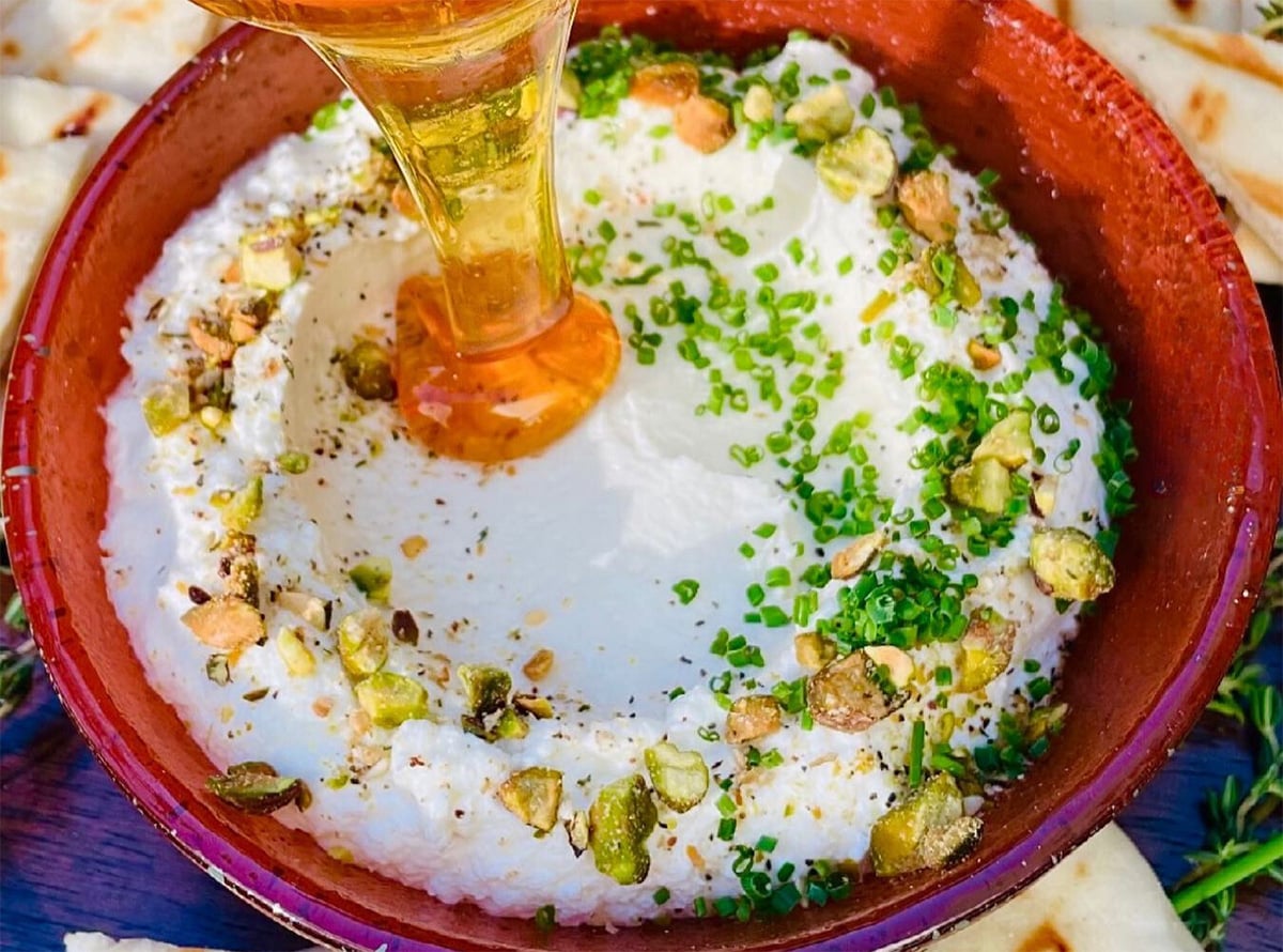 In Hillsboro, Ore., Twisted Gyros brings layered flavor and texture to its Whipped Feta, with wildflower honey, toasted pistachios, chives, house-made za’atar and olive oil.