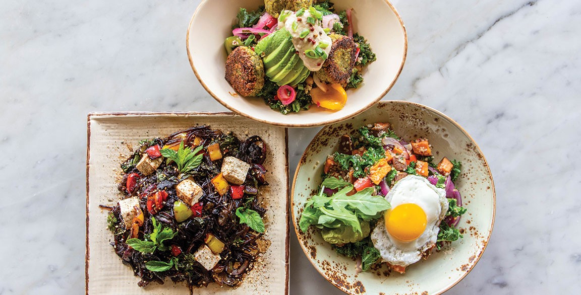Handlebar, a comfort-centric vegetarian and vegan concept in Chicago, delivers its modern American spin on Mexican fare with its crispy Fried Avocado Tacos in flour tortillas, filled with cabbage slaw, tomatoes, refried beans, brown rice, salsa verde and housemade ranch dressing. Eastern Mediterranean flavors also show up big in contemporary plant-based flavor play.